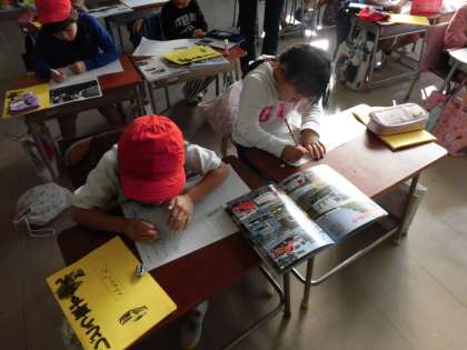 1年生の国語の授業です。「はたらく自動車」の学習です。