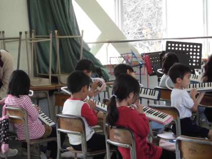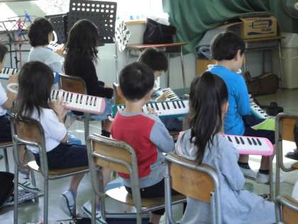 鍵盤ハーモニカで練習しました。