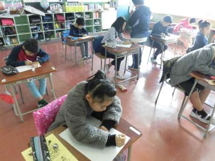 5年生は国語の授業でした。自分の考えをしっかり書いており、文章を書く力がついてきました。