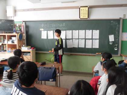 6年生の家庭科は自分で献立を考えて書いて発表をしていました。