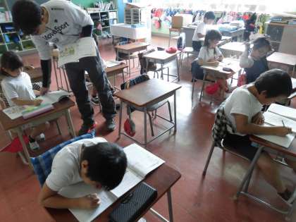 2年生は今、九九の学習をしています。今日は、問題文づくりにも取り組んでいました。