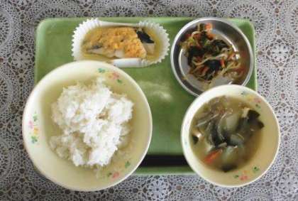 今日は、八王子市内の保育園、幼稚園、都立学校、小学校、中学校でいっせいに『八王子産の白いごはん』を食べる日でした。高月町、長沼町、元八王子町、東中野のお米です。ほとんどが高月町で作られていますが、高月町は水に恵まれた地域で、都内でも一番大きい田園が広がっています。今日のお米の銘柄は、キヌヒカリ、コシヒカリ、アキニシキのブレンドでした。