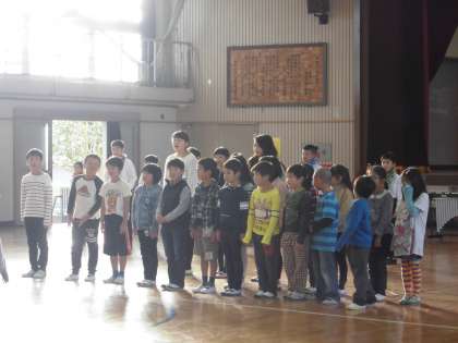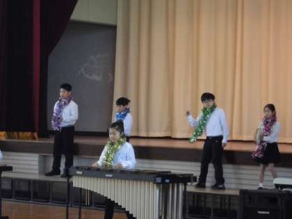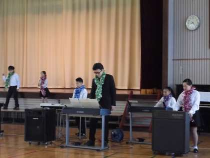 合奏と合唱を、全校生徒の前で披露してくれました。