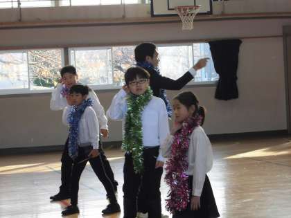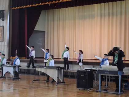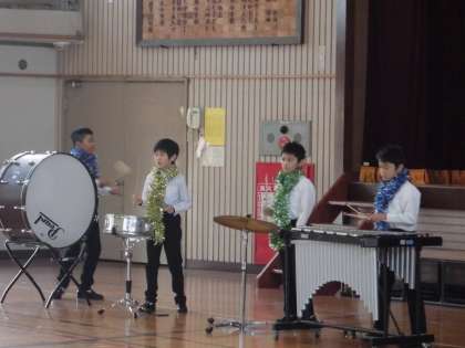 合奏と合唱を、全校生徒の前で披露してくれました。