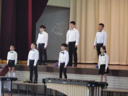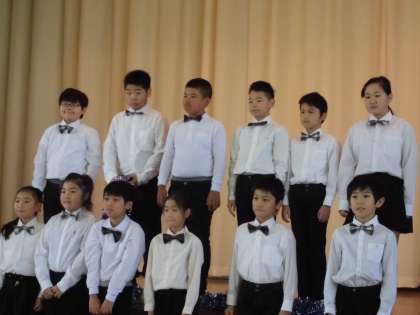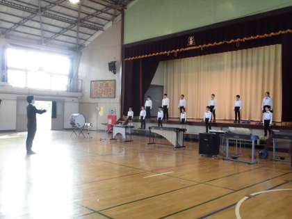 合奏と合唱を、全校生徒の前で披露してくれました。