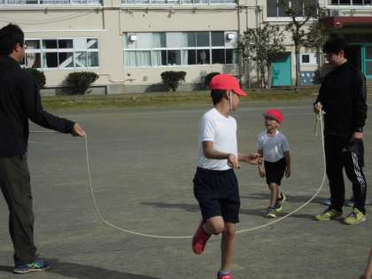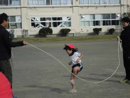 長縄とびの練習をしていました。