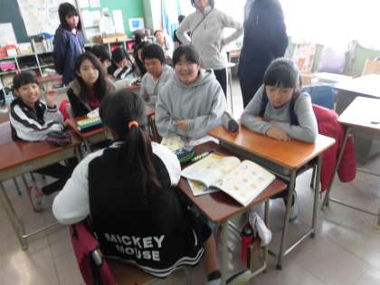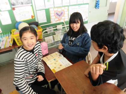 前回の家庭科で自分で考えた献立を書き、みんなに発表していましたが、今度は12月に調理実習です。何を作るか教科書を見ながらグループごとに話し合いをしていました。