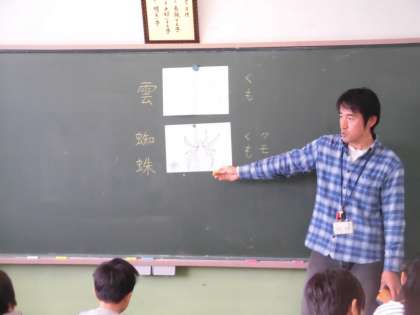 3年生の国語の授業です。空に浮かぶ「くも」、虫の「くも」さて、「くも」と書かれただけではどっちの「くも」かわからない。そういう時はどうするの?という導入から始まった授業でした。