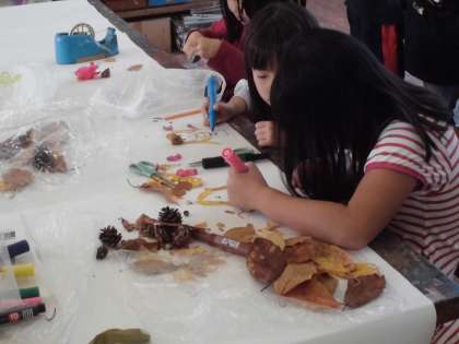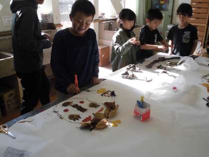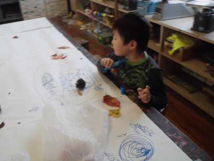 拾ってきた落葉などを並べて、