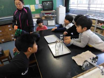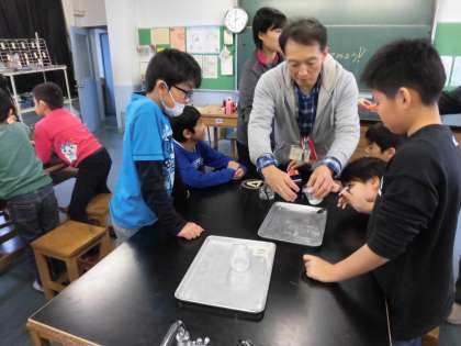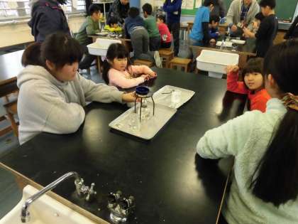 あさひ学級の5時間目は理科の実験をしていまいた。飽和食塩水をあたためると・・・さてどうなるでしょう。