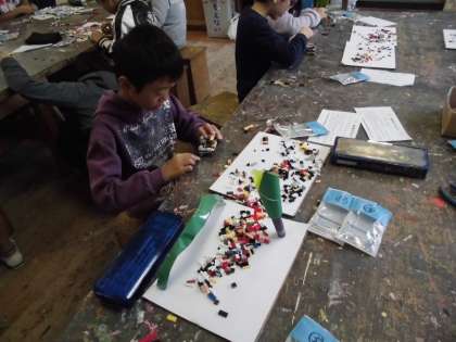 協力して、レゴに取り組んでいました。