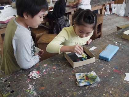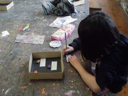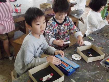 宝石に色をぬり、乾かした後ピカピカえきをぬる。