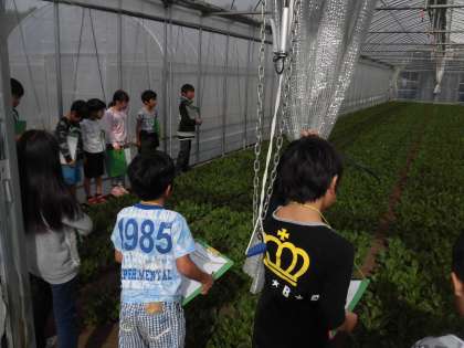 3年生が原島さんのお宅に見学に行きました。農家の見学ということで、どんな野菜を作っているのか、どんな機械を使っているのか、大変なことはどんなことなのか等をお話してくださり、畑やビニールハウスの中や保冷庫の中の見学もさせていただきました。
