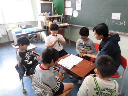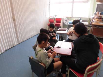 あさひ学級の音楽の授業を参観しました。ちょうど楽器のテストや練習をしていました。