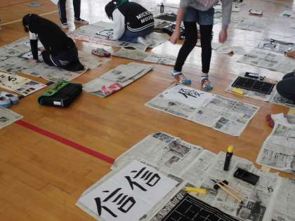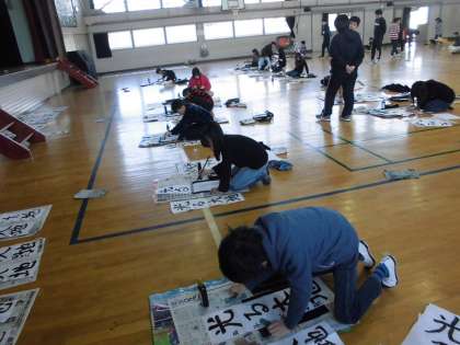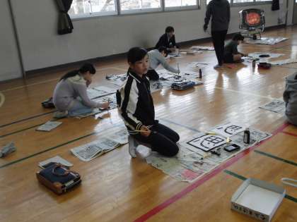 今日は体育館で書初めをしました。
