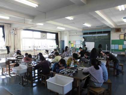 三角フラスコに水を入れ、ガスコンロで熱する。