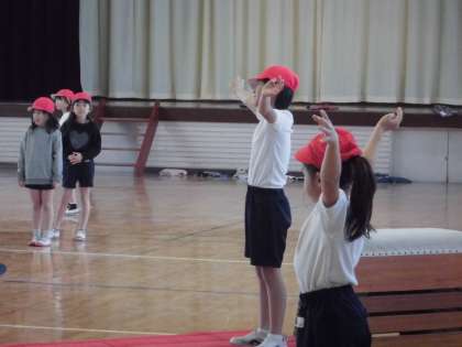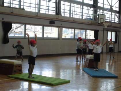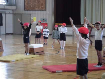 そのあと、跳び箱を跳び、着地ポーズも決めていました。