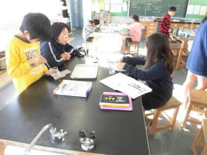 5年生の理科の学習は「ものの溶け方」です。食塩とほう酸を使って、どのくらいとけるのか実験していました。