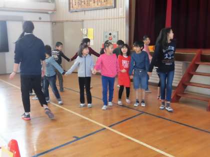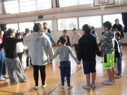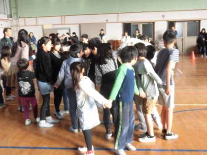 今日は、今年度最後の学校公開日でした。1時間目は今年度からの取組、「縦割りスポーツ大会」でした。縦割り班対抗の「ダンス付玉入れ」と「ピンポン玉筒リレー」の2種目で行いました。みんなとっても楽しそうでした。まずは、ウォーミングアップから紹介します。