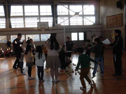 今日は、今年度最後の学校公開日でした。1時間目は今年度からの取組、「縦割りスポーツ大会」でした。縦割り班対抗の「ダンス付玉入れ」と「ピンポン玉筒リレー」の2種目で行いました。みんなとっても楽しそうでした。