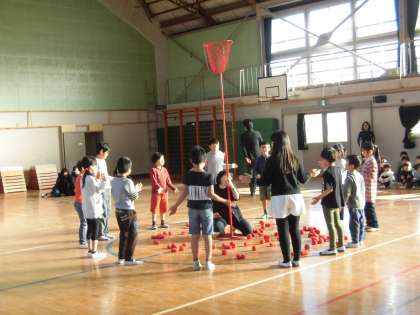 次にダンス付玉入れの紹介です。一番たくさん入った班は41個でした。
