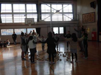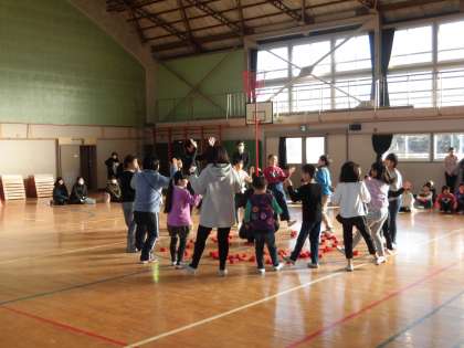 今日は、今年度最後の学校公開日でした。1時間目は今年度からの取組、「縦割りスポーツ大会」でした。縦割り班対抗の「ダンス付玉入れ」と「ピンポン玉筒リレー」の2種目で行いました。みんなとっても楽しそうでした。
