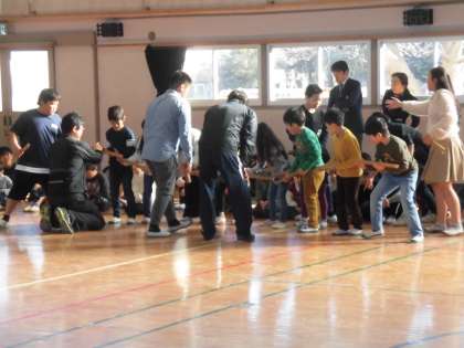 今日は、今年度最後の学校公開日でした。1時間目は今年度からの取組、「縦割りスポーツ大会」でした。縦割り班対抗の「ダンス付玉入れ」と「ピンポン玉筒リレー」の2種目で行いました。みんなとっても楽しそうでした。
