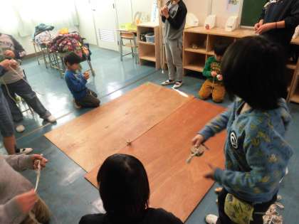 今日の5時間目にあさひ学級では生活単元学習で昔遊びを行っていました。