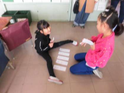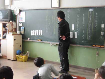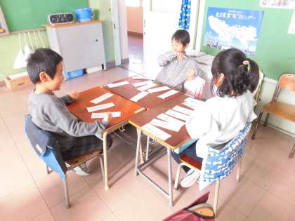 1年生の国語の授業では、言葉遊びでした。保護者の皆さんにも参加していただきました。