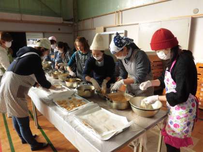 先週の土曜日の放課後、親児の会とPTAの共催で「餅つき会」を行いました。