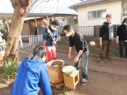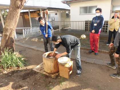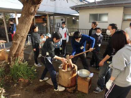 先週の土曜日の放課後、親児の会とPTAの共催で「餅つき会」を行いました。