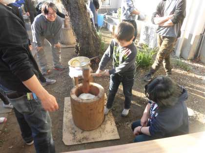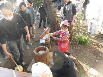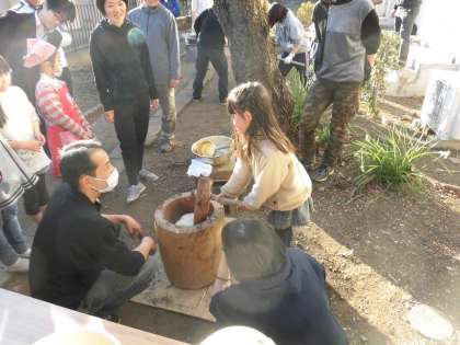 先週の土曜日の放課後、親児の会とPTAの共催で「餅つき会」を行いました。