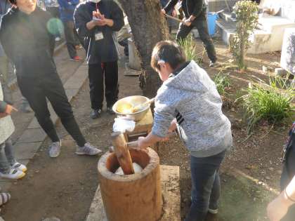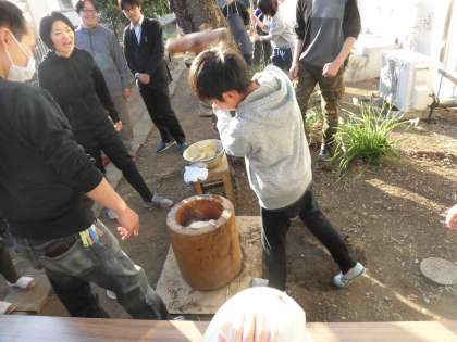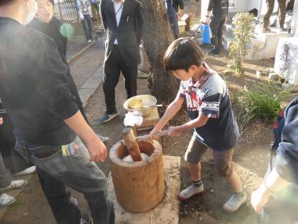 先週の土曜日の放課後、親児の会とPTAの共催で「餅つき会」を行いました。