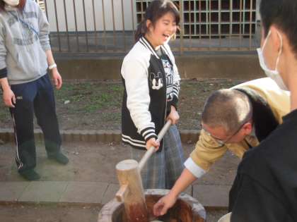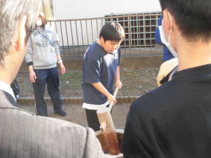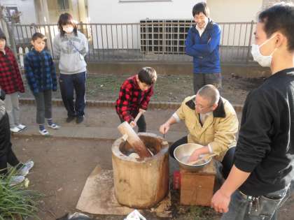 先週の土曜日の放課後、親児の会とPTAの共催で「餅つき会」を行いました。