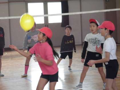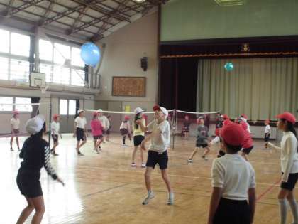 風船を使って、バレーボールをしていました。