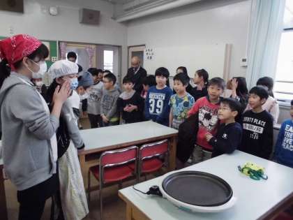 家庭科クラブは、お好み焼きを作っているところを