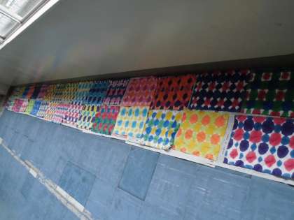 個性ある色とりどりの作品が、廊下に並んでいました。