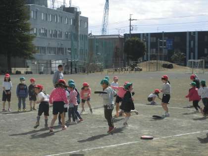 みんなでドッチビーをしていました。