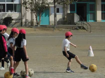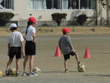 今日は校庭でサッカーをしていました。
