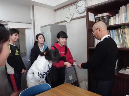 校長先生に渡しに行きました。