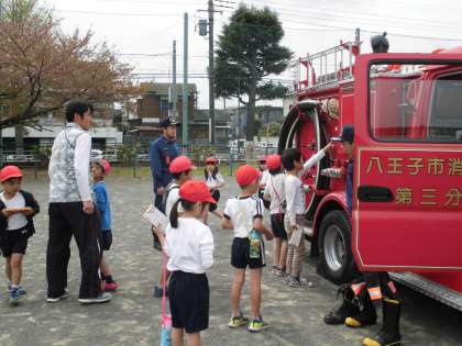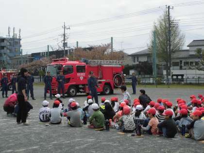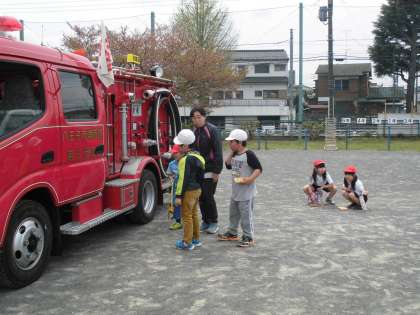 消防車を観察して、どの場所で、どの方向から描くのかを