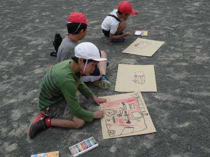 すぐに描きだす子、じっくり考えている子さまざまでした。