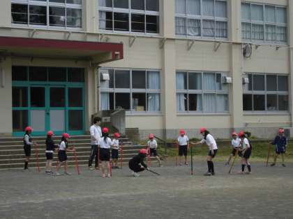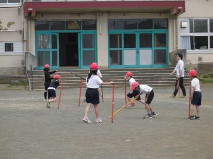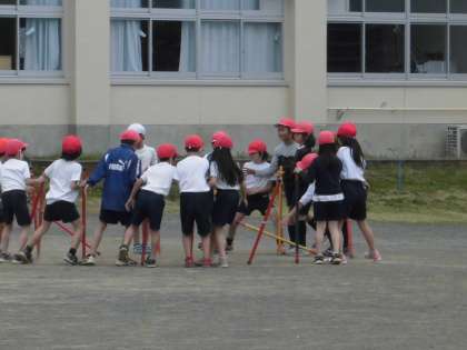 3年生が、消防写生会だったので、4年生だけの体育でした。