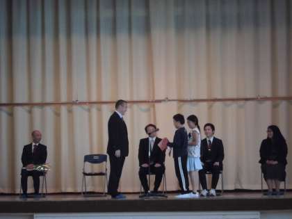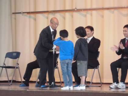 が、感謝の言葉を述べ、花束贈呈をすると、