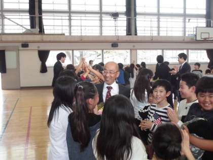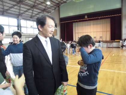 が、感謝の言葉を述べ、花束贈呈をすると、