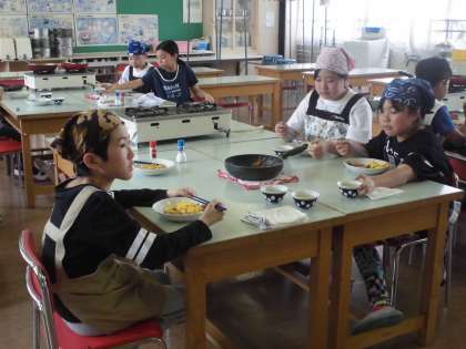 調理実習で「スクランブルエッグ」と