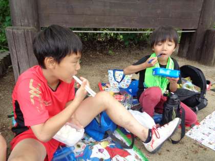 山頂では、お家の方が作ってくださったお弁当を、