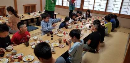 アンパンマンのリンゴジュースに大喜びの子供たち。