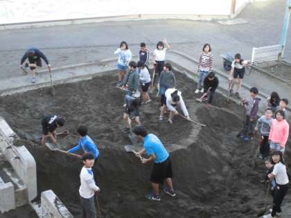 2日目3日目は、全員で大きな山を作り、水を流しました。
