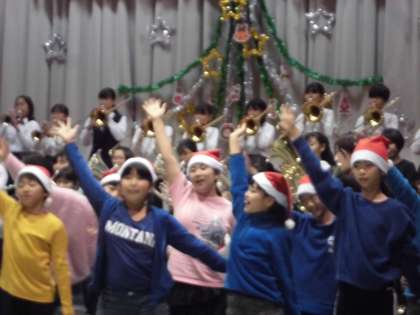 甲ノ原中の体育館で、清水小、甲ノ原中との合同音楽会がありました。